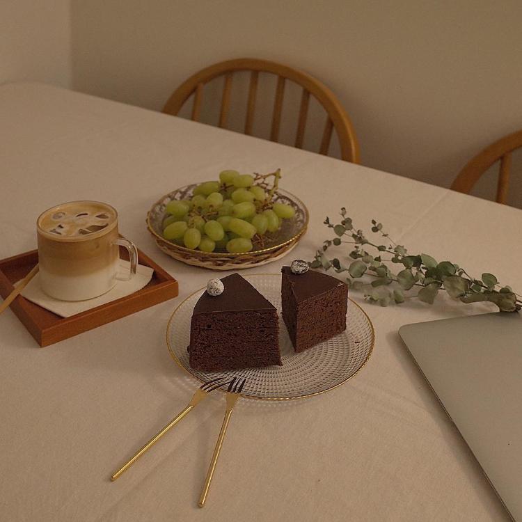 홈-카페 오픈! 고소한 라떼와 초코 케이크의 조합이 좋네요.
