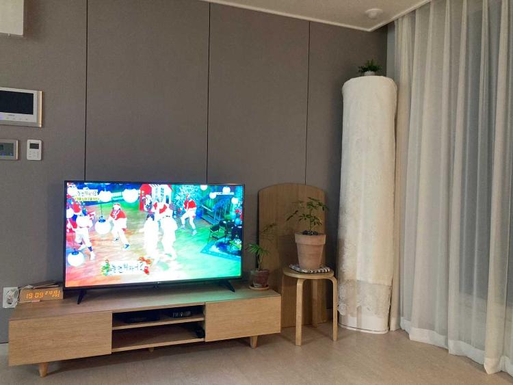 우드로 꾸민 거실입니다~