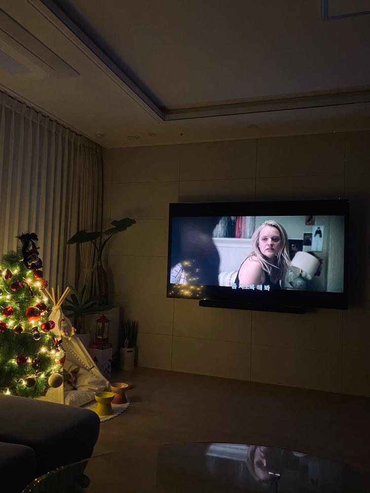 내일이면 정리할 트리! 넷플릭스볼때 트리만 켜두니 은은하고 좋더라구요❤️ 티비는 사운드바까지 같이 설치해서 사운드 빵빵!