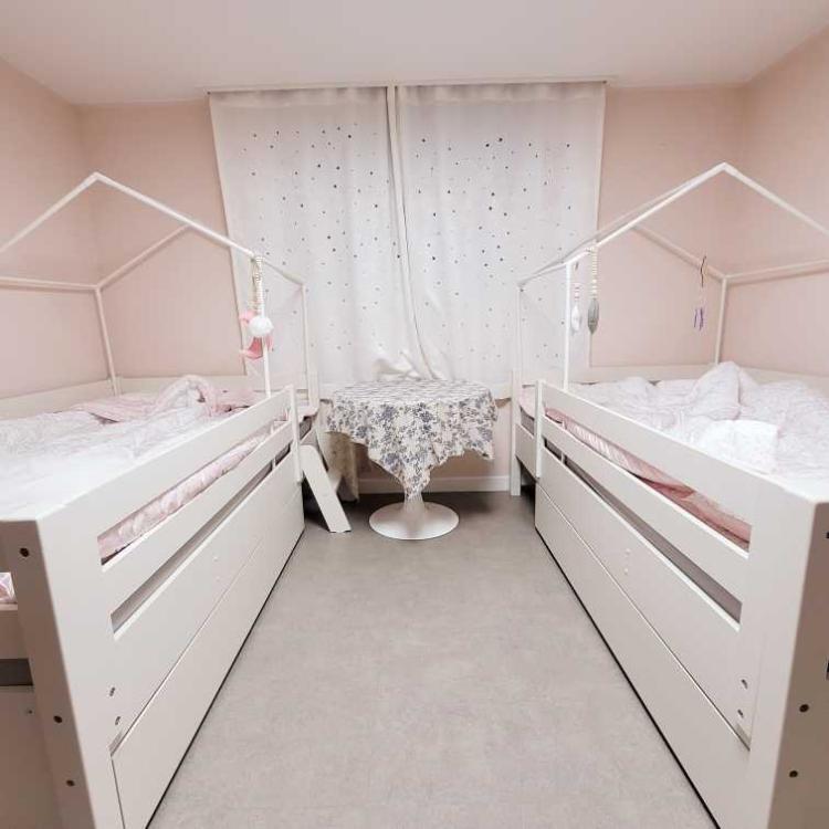 아이들 침실에 캐노피대신 플레이하우스를 놓았어요,