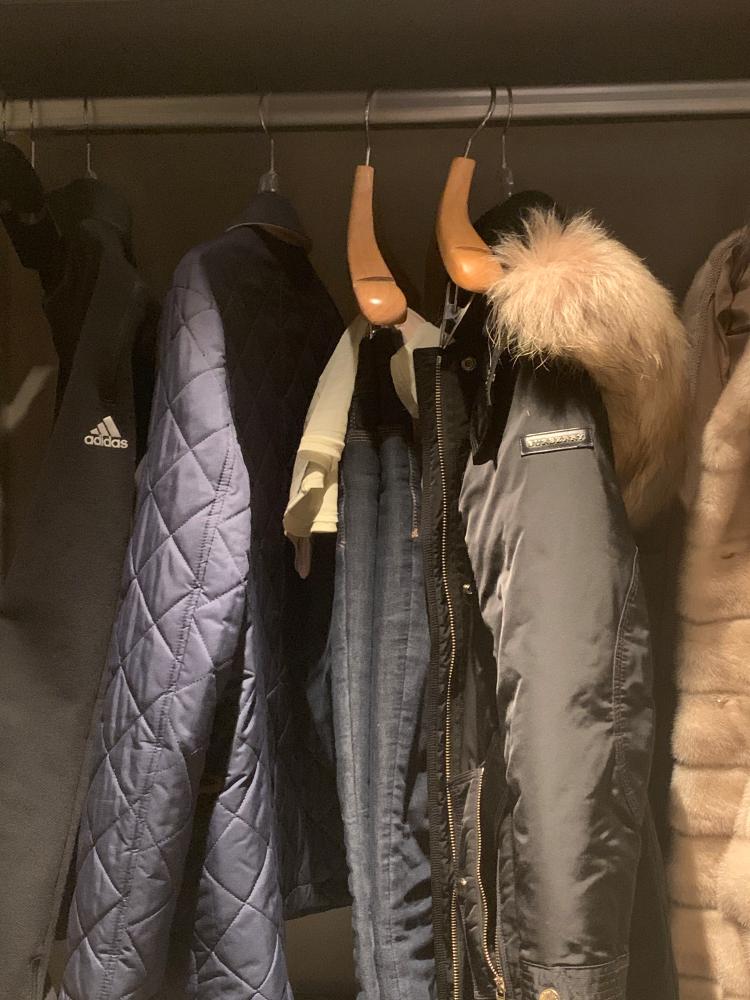 옷걸이 여러개로 패딩류들 걸어두고 있어요