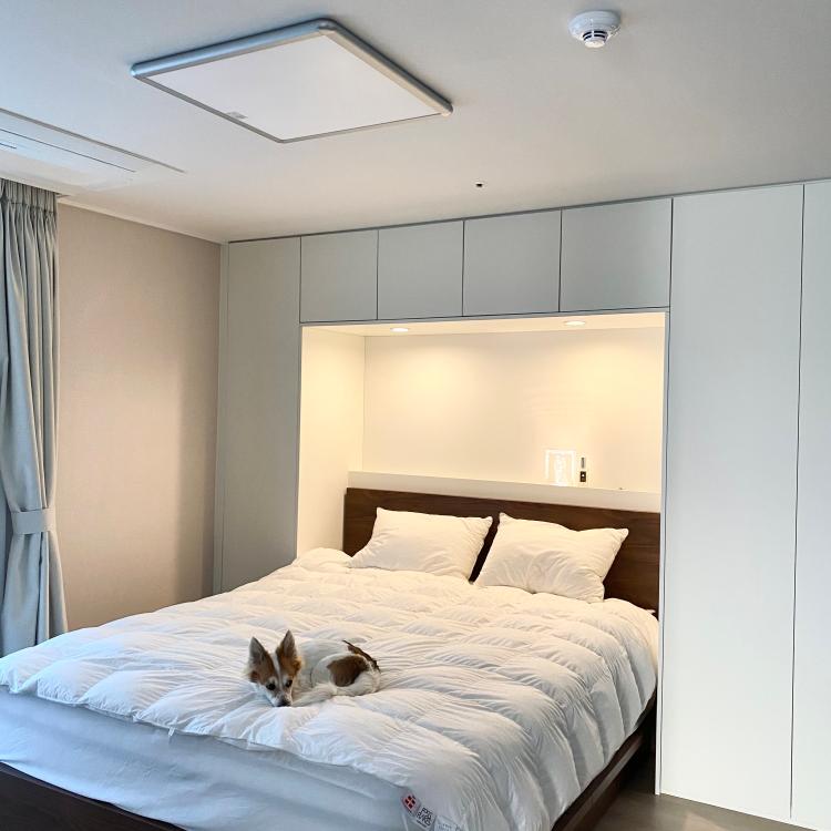 간접등 은은한 안방이에요 :-) 침대장 너무 아늑해요