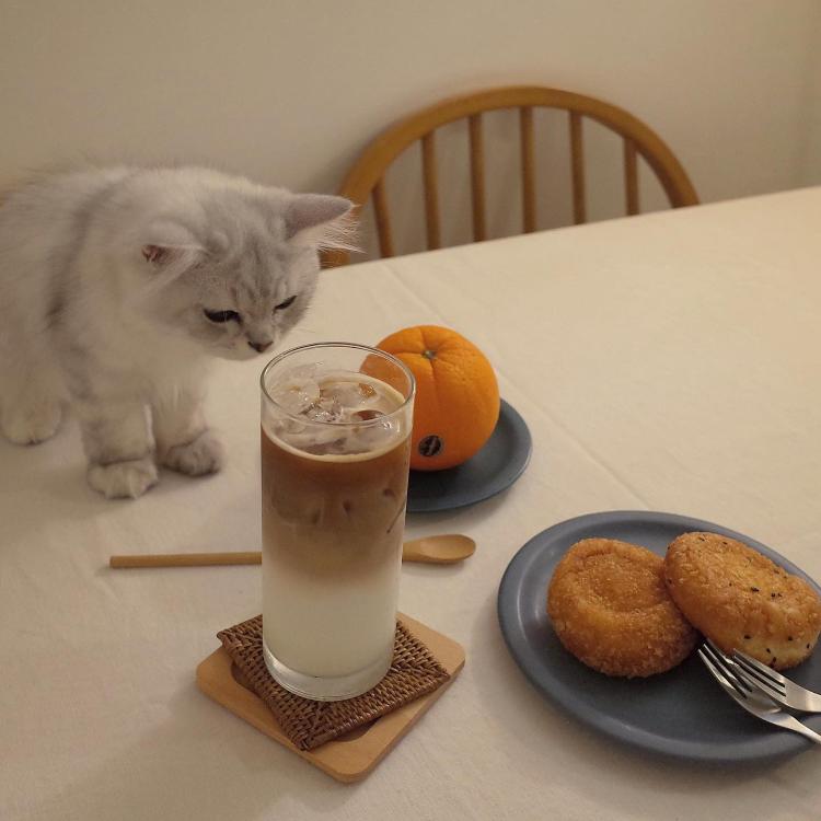 오늘의 홈카페 메뉴는 고로케와 아이스 카페라떼- 궁합이 좋아요!