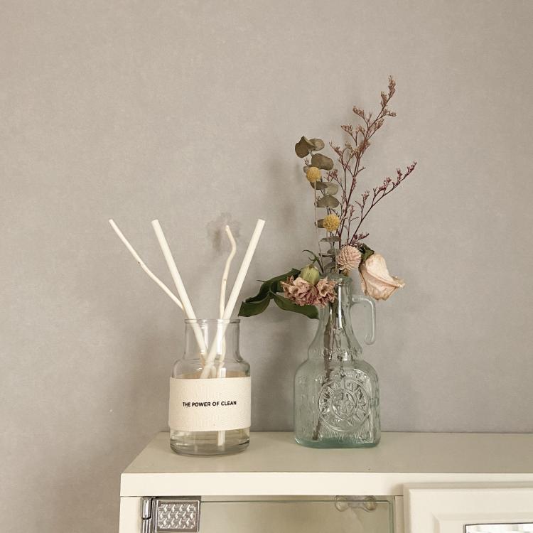 화장대 윗 쪽엔 디퓨저와 드라이플라워도 두었어요. :)
