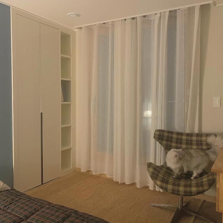 게스트룸에 달은 린넨 커튼, 분위기가 예뻐졌어요!