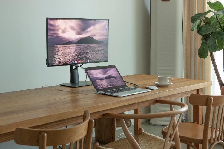 재택근무 대비해서 모니터를 샀어요. 테이블 너비가 넓어야 큰 모니터를 보기 편해요.