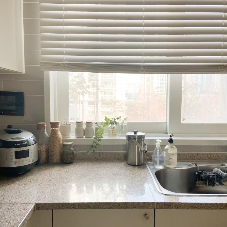 주방 일을 마치고 한번 쓱 돌아본 저희 집 작은 주방이에요 ㅎㅎ
