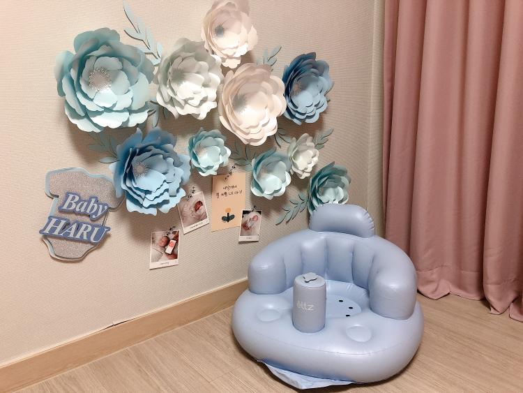 페이퍼플라워랑 아기의자랑 색감이 비슷해서