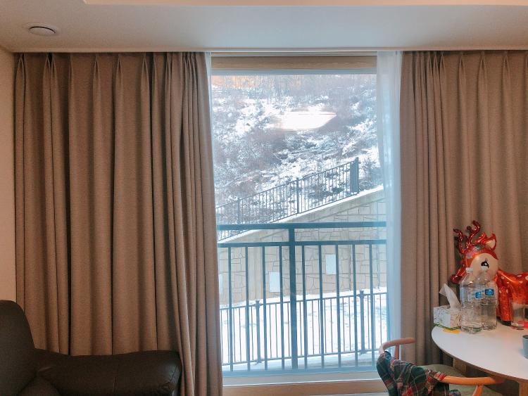 암막커튼이랑 차르르커튼 두개로 해두니까