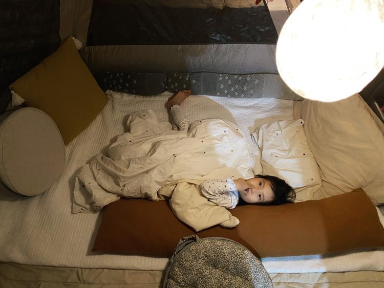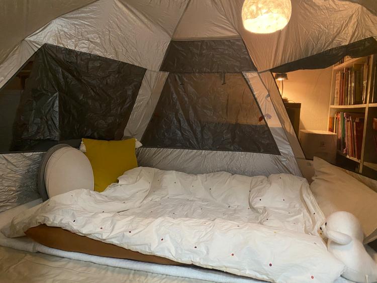 혼자 자겠다는 아이를 위해 텐트를.펴줬어요 😊