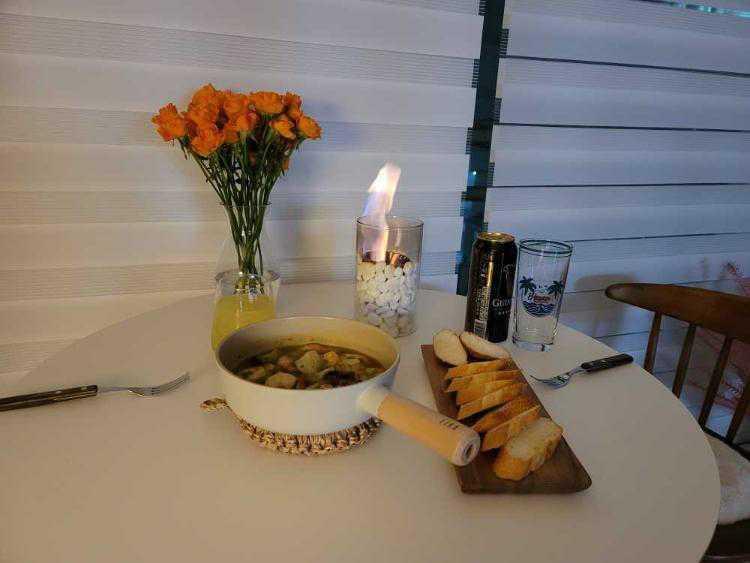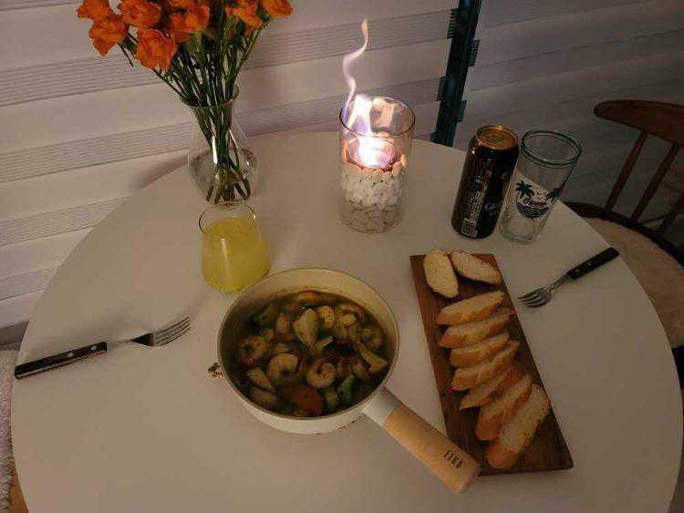 저녁 야식으로 감바스 만들어 먹었어요~
