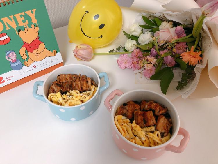 그릇은 귀엽게 하늘색 핑크색으로!