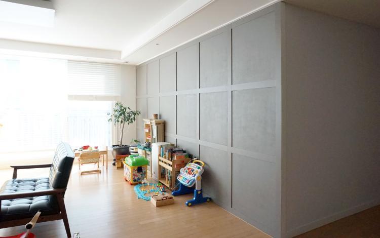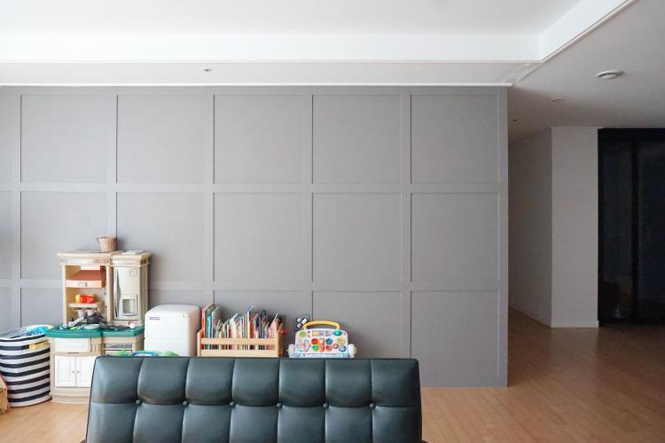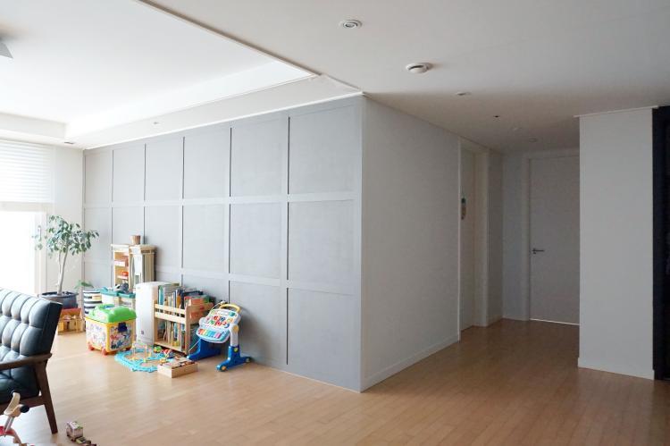 원래있던 아트월을 철거하고 셀프로 격자몰딩 웨인스코팅으로 꾸며본 공간이에요.