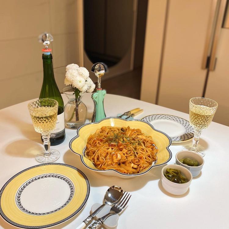 연휴 마지막 날 남편이랑 토마토파스타에 가볍게 와인한잔했어용 ◡̈