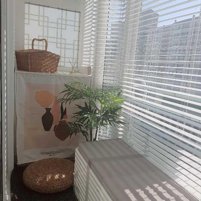 베란다 수납장문은 떼어내고 커튼으로 가렸어요