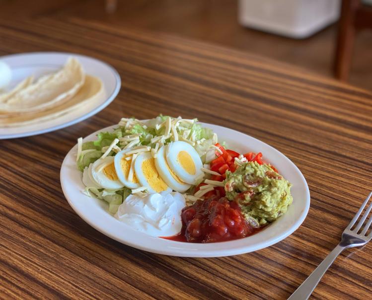사워크림, 과콰몰리, 토마토살사로 만들었어요.