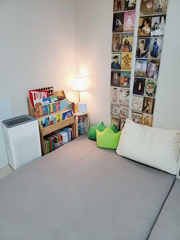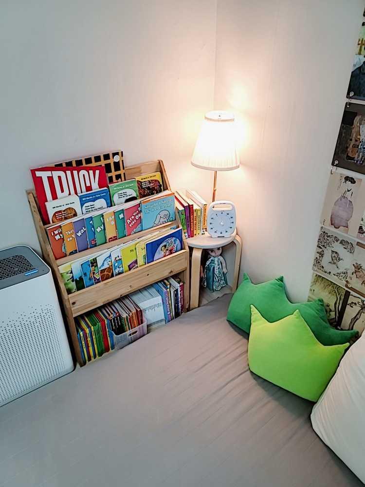 잠자리독서를 위한 작은책장과 조명을 같이 배치했어요~^^