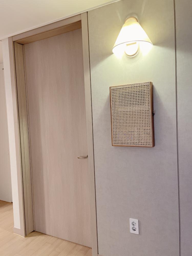 비상등 조명을 전구색으로 바꾸었더니 저녁에 거실의 분위기가 따뜻해졌어요-