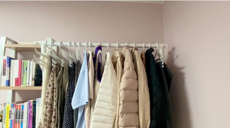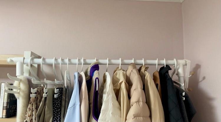 화이트 옷걸이로 통일하니 더 깔끔해 보이더라구요