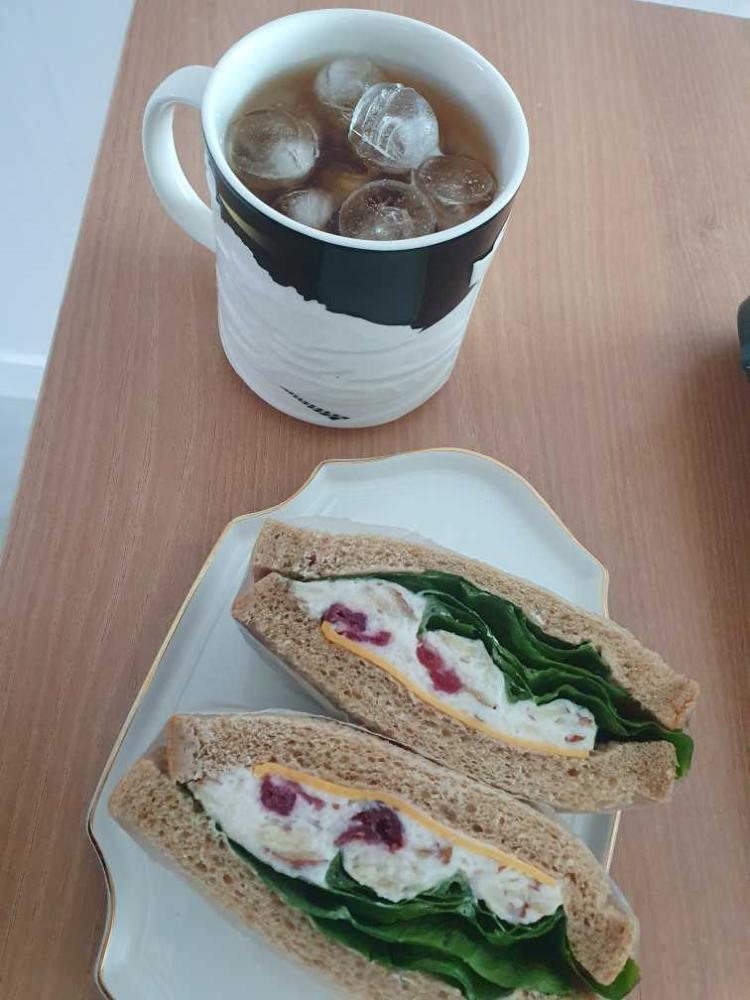 출근 안하는 아침에는 따뜻한 모닝커피와 크랜베리 샌드위치로 힐링해요♡