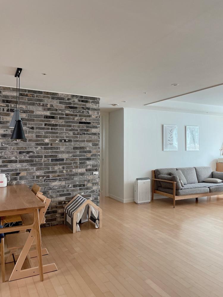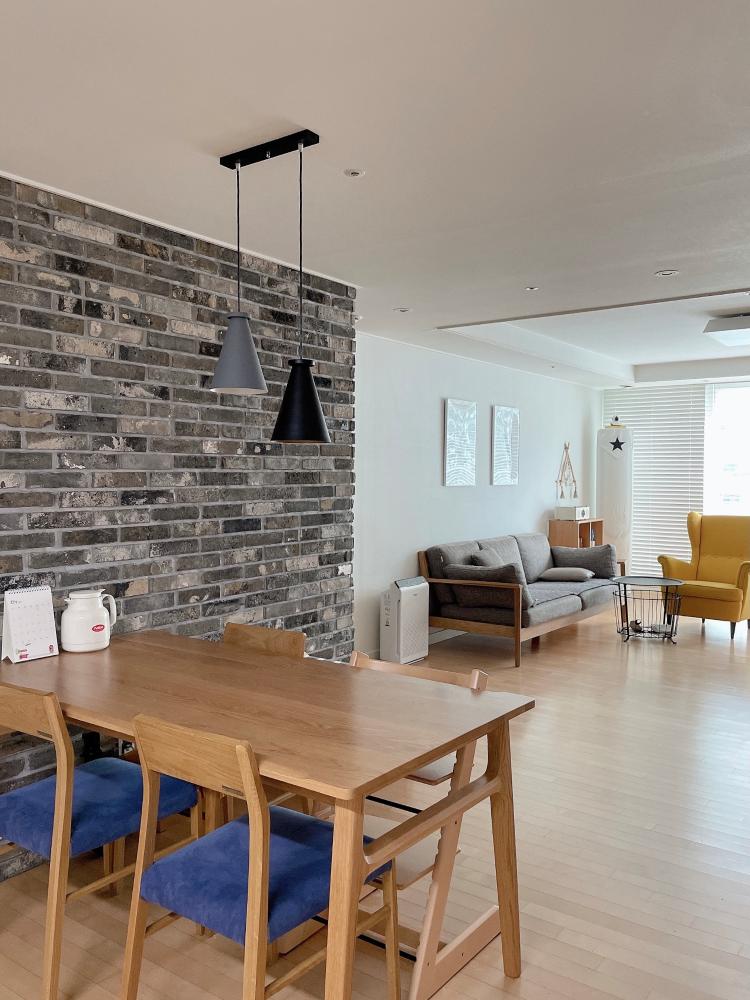 셀프로 붙인 파벽돌~저희집 포인트가 되는 공간이에요.