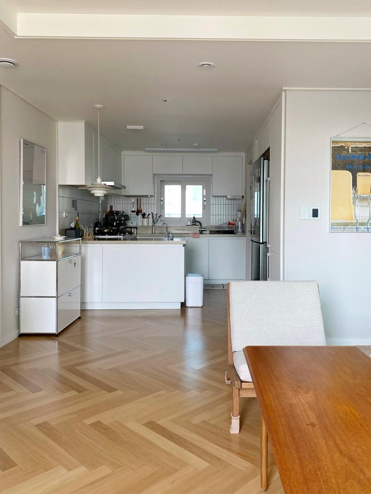 화이트로 깔끔하게 꾸민 주방이에요