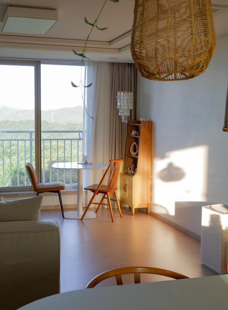 거실 한켠 빛이 잘들어오는 창가쪽에 테이블을 두고 나만의 홈카페존을 만들어 두면 오래 머물고 싶은 공간이돼요.