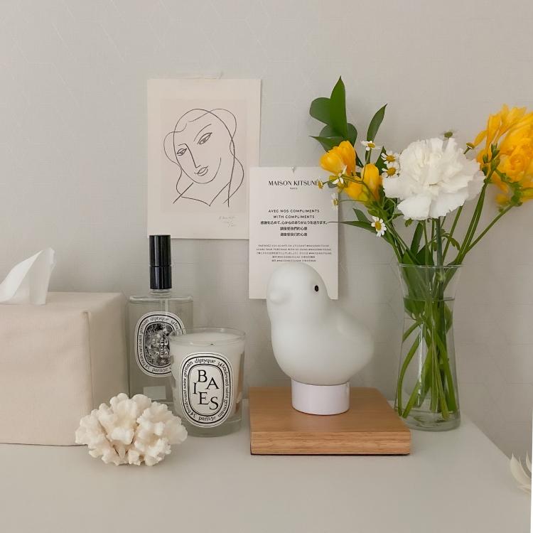 수납장 위에는 무드등과 룸스프레이가 있어요 :)