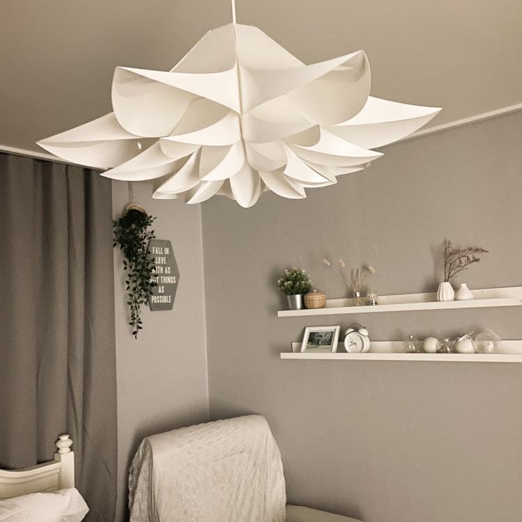직접 하나씩 접어서 만든 꽃 조명이라 애착이 커요!