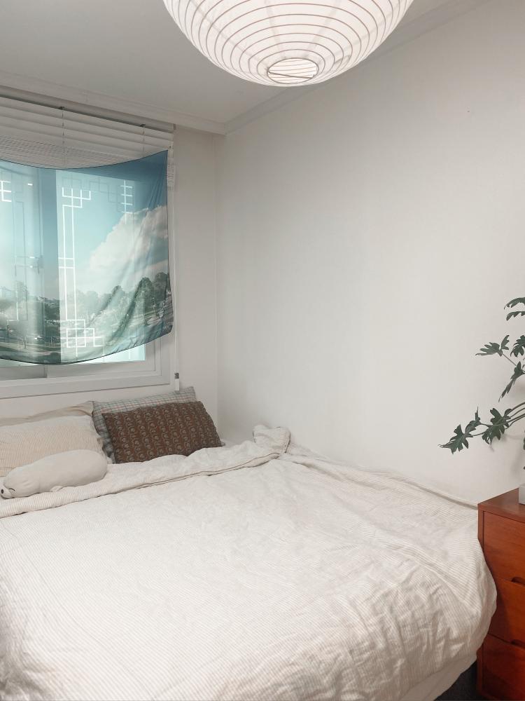 라탄 테이블을 침실로 옮겼어요~ 아마도 비우기 전 마지막 배치일것 같아요^^