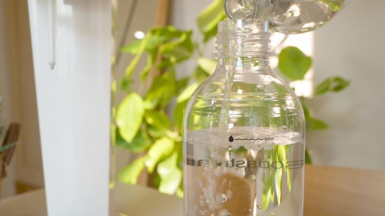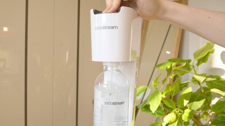 여기에 물을 담고 본체에 장착한 뒤, 상단의 버튼을 눌러주기만 하면 손쉽게 탄산수가 만들어집니다.