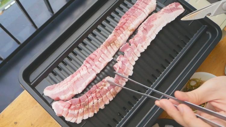 저는 삼겹살을 구울거라 그릴팬 사용을 위해 기름받이부터 끼워줬어요. 기름받이엔 물을 반 정도 따라두고 사용해야 한답니다! ☺️ 더 안전하고 나중에 설거지하기에도 좋아요.