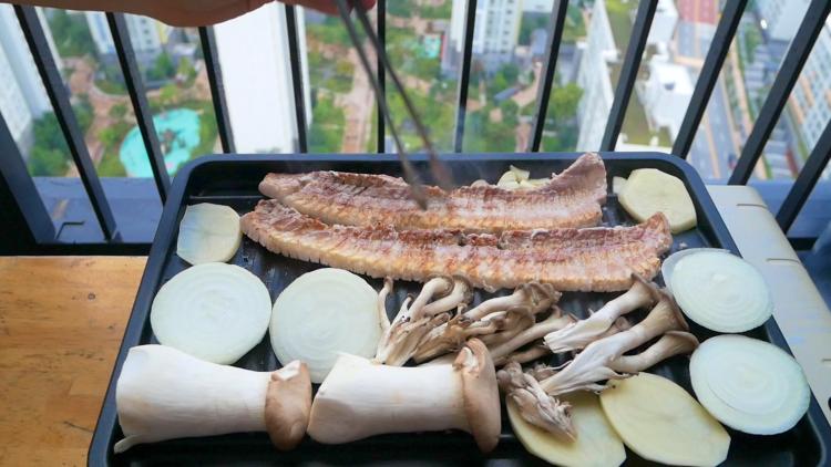 넓찍한 그릴 사이즈 좀 보세요! 고기가 엄청 길었는데 다 들어가고도 남는 사이즈~ 그래서 옆에 양파와 감자, 버섯, 마늘도 잔뜩 올려서 함께 구웠어요. ☺️❤️