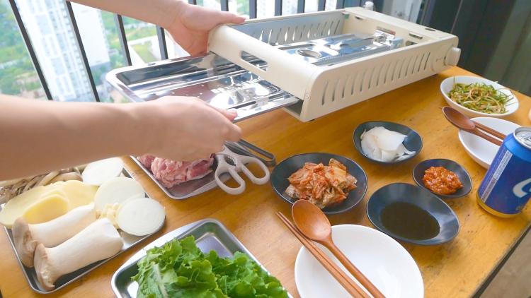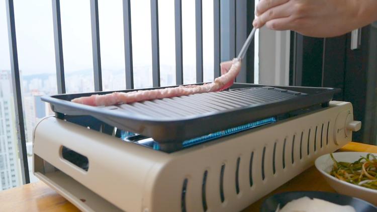 지글지글 고기 굽는 소리! 영상으로 보여드리고픈데 아쉽네요! 🥺 캠크닉 3콤보 구이바다는 중앙에도 화구가 추가되어서 열 전도를 더욱 최적화했다고 해요. 그래서 고기가 금방 고루고루 맛있게 익는답니다!