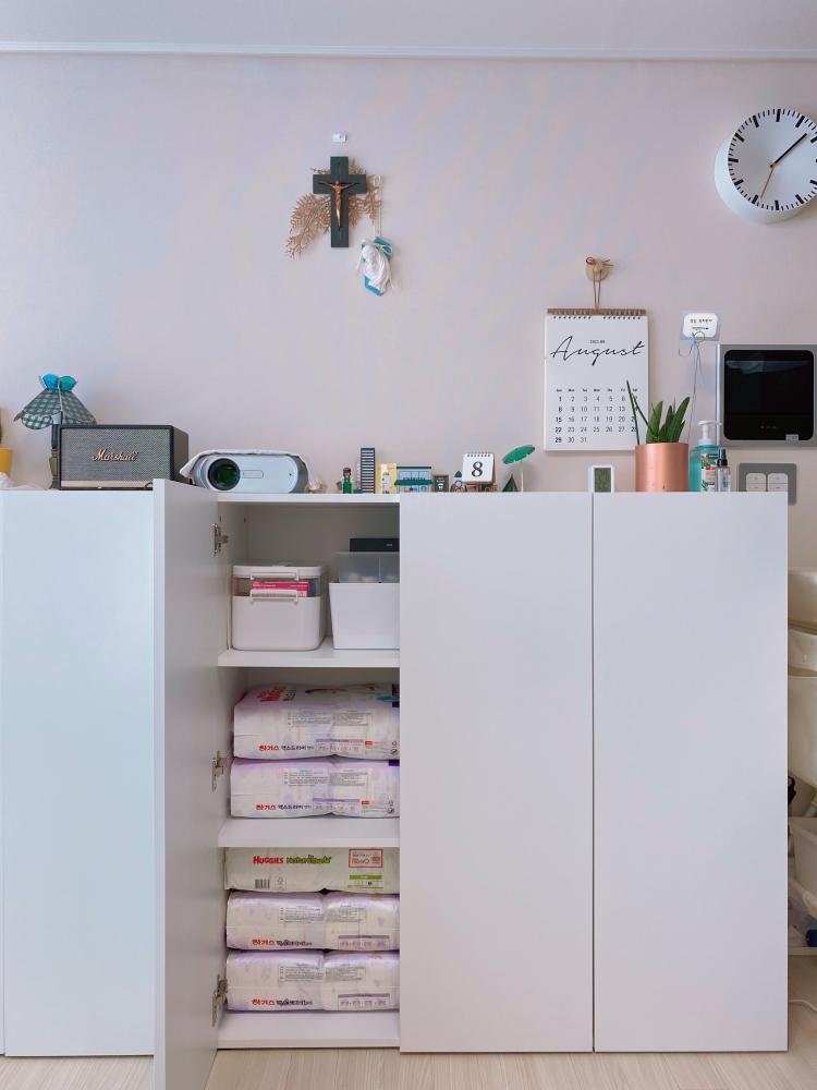 거실 키 큰 수납장이라 이것저것 정리하기 좋아요~