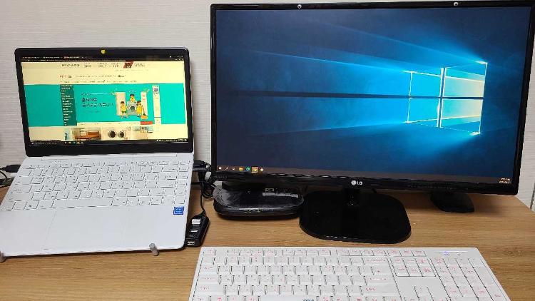 서브 노트북이 자리하고 있는 서재 책상입니다