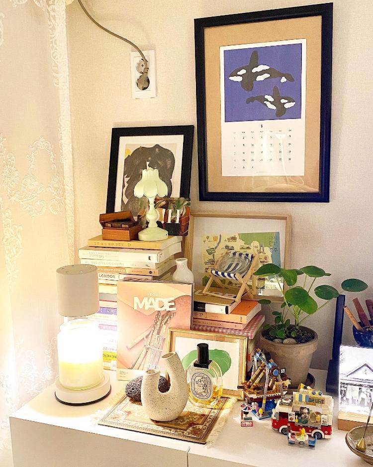 거실 한켠에 내가 좋아하는 물품들로 한가득