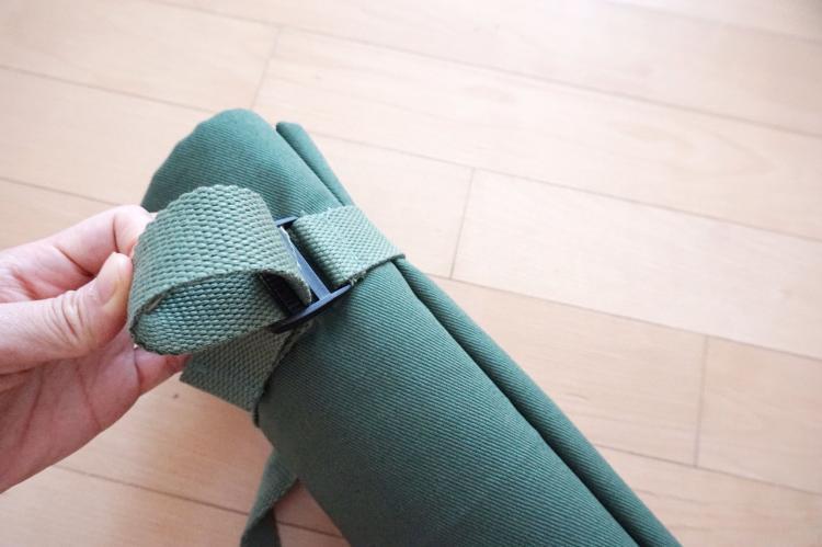 버클부분을 살짝 풀어주면 매트를 고정하던 핸들이 벗겨지면서 방수매트를 펼칠 수가 있어요.