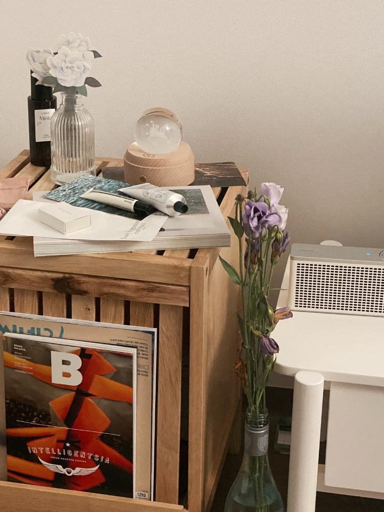 책도 때로는 소품이 될 수 있어요! 자주 보는 영화 잡지와 매거진 B로 데코레이션 해보았어요. 위에도 역시 집과 공간에 대한 생각이 담긴 책이랍니다 ^_^ 매거진랙의 매력이죠