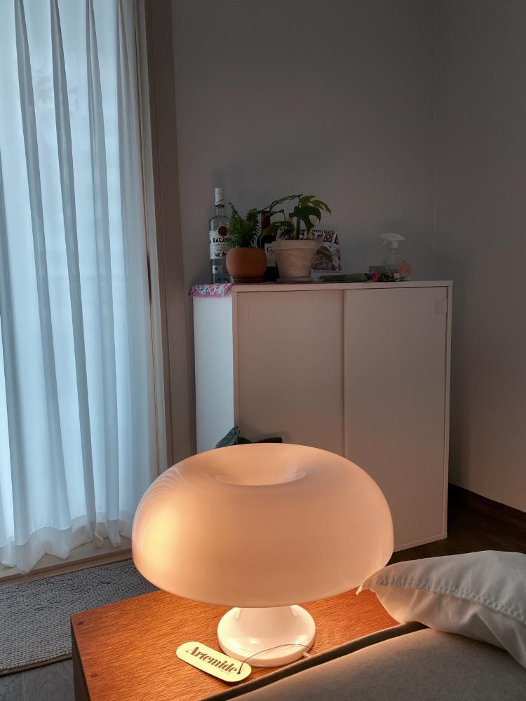 아무래도 작은 집에서는, 패브릭과 조명이 제일 중요한 것 같아요 😳 지금보다 깔끔했던 나비주른 커튼+버섯조명입니다