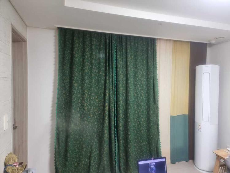 자메이카 분위기에 거실커튼에 자메이카에는 꼭있어야할 작년 하이마트에서 산 무풍에어컨과의 조화..^^