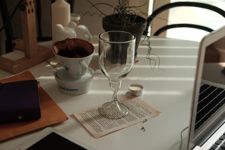 빈티지샵에서 데리고 온 유리잔.