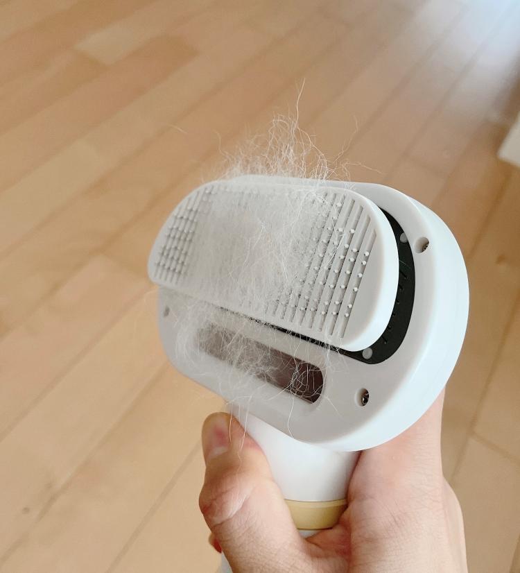 정신없이 말리다보니 브러쉬에 털이 꽤 많이 모였죠? 윗쪽에 있는 털 제거 버튼을 누르면 브러쉬에 낀 털들이 이렇게 모여요. 목욕시키는 시간보다 말리는게 더 힘들고 오래걸렸는데 하이메이드 펫가전 시리즈 ‘퍼비 그루밍 드라이어’ 덕분에 목욕 스트레스가 해결되었어요 ^^ 개인적으로 정말 필요한 제품이었는데 사용해보니 기대이상으로 넘넘 마음에 드는 제품이에요🤍