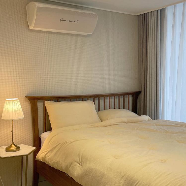 포근포근한 노란색이 감미된 침실:) 패브릭으로 따뜻한 느낌을 주었어요!