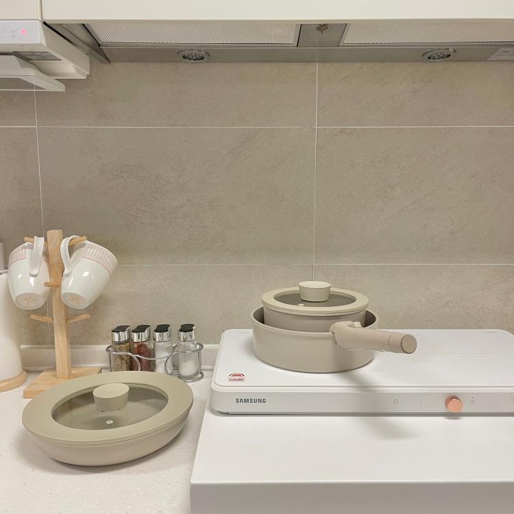 인덕션 공사가 힘들어 삼성 더 플레이트로 주방을 바꿔봤어요:) 이동이 가능해서 이리저리 활용할 수 있어요!