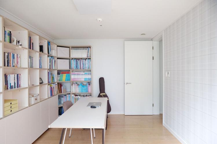 화이트벽지와 단정한 체크패턴 벽지로 꾸며본 서재예요❤️