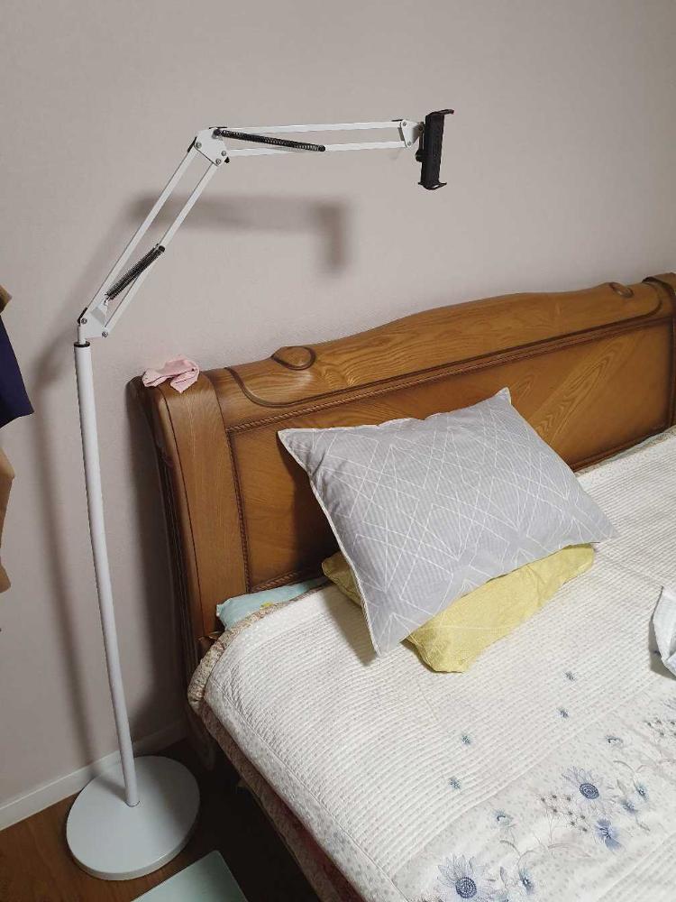 침대 핸드폰거치대입니다. 거치대를 고정시킬 수 있는 침대가 아니라서 저런 거치대를 사용하고 있어요.