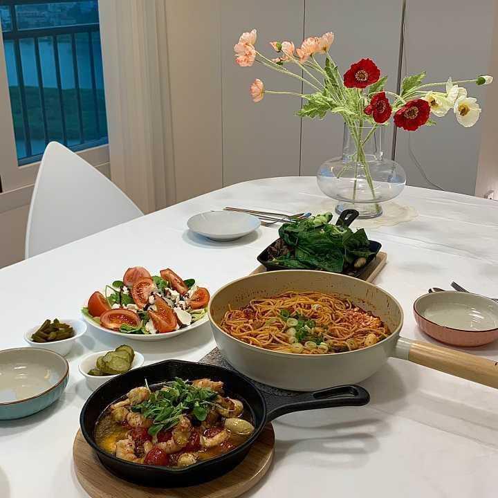 화이트 테이블에 화이트 후라이팬 ㅎㅎ