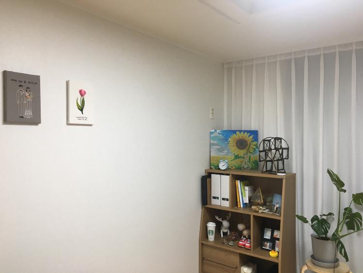 친구가 만들어준 청첩장 액자를 바탕으로 심플한 거실입니다