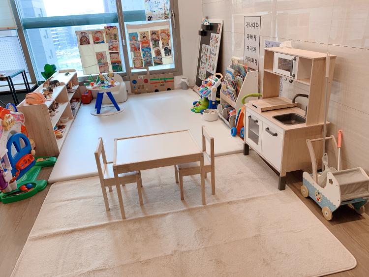 아기 놀이공간을 거실에 일부 만들어줬어요~